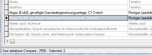 On the Status Bar (below) of DOHSBase Compare the number of selected subtances is presented (with the number of selectable substances).