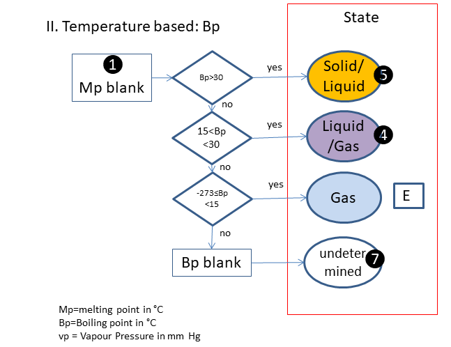 If the physical state is not clear, the following scheme is used (based on melting & boiling point), in which is: