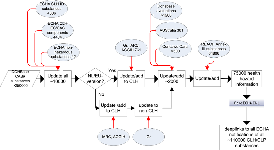 The available Occupational Exposure Limits (OELs) are presented in the tab 'Limit Values'. In the NL-versions (NL-Standard and NL-Xtend) the information source is primary of Dutch origin. When Dutch Limit Values or EU-values are non-existent, DOHSBase Compare sources of other countries are added. Therefore a structural hierarchy is used. Next to the Exposure Limit(s), the reference time and the source of the Occupational Exposure Limit is presented. For the EU-version (EU-Xtend) the basis are the indicative and binding limit values (IOELV and BLV) of the European Union. If there are no EU-values available, also a hierarchy is used to present Occupational Limit Values of other origin.